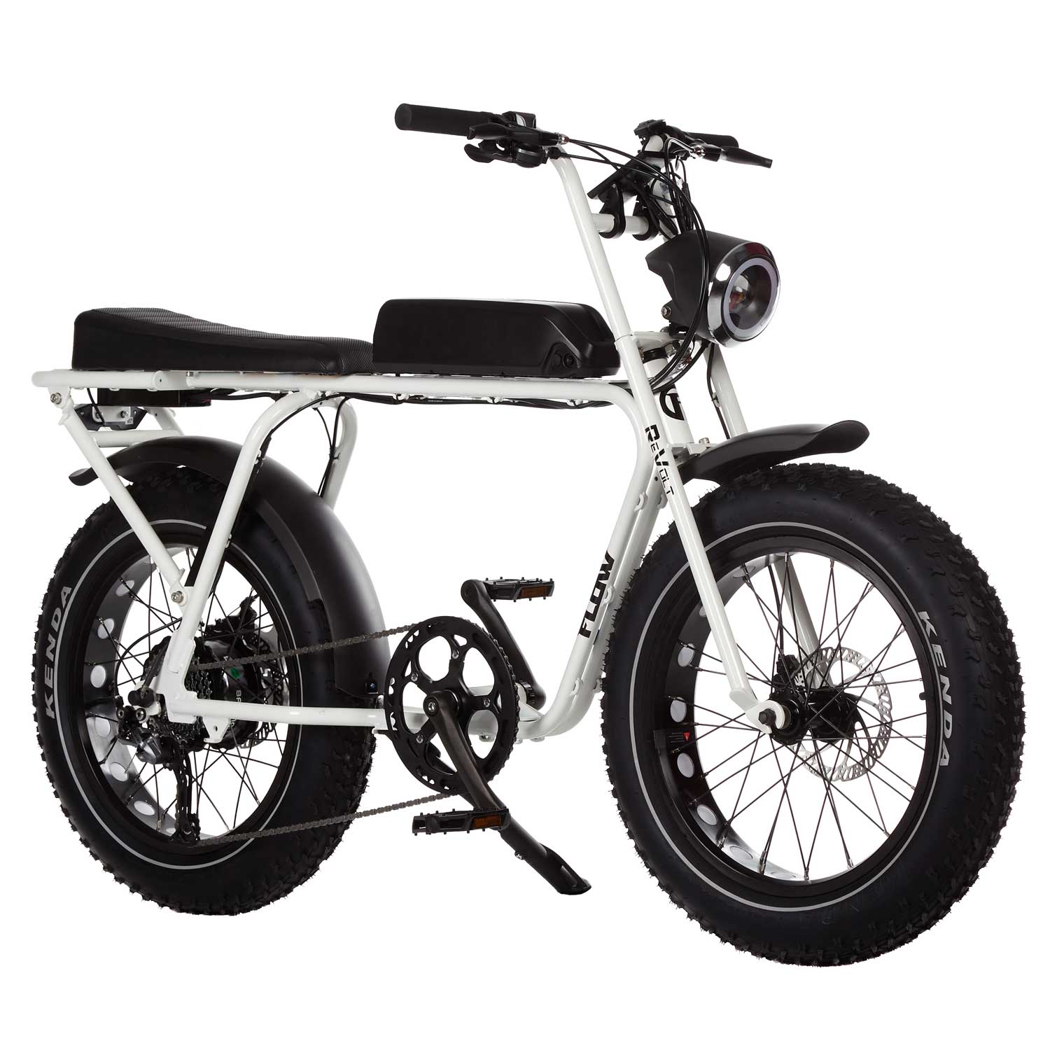 The all-new retro-style class 3 Flow ReVolt features a Bafang 500-watt rear drive motor and an LG 36-volt, 14-amp hour lithium-ion “gas tank-like” battery. The full color Bafang display panel features a high-tech speedometer, a USB plug, and is flat out more exciting than those old-fashioned black and white display panels.